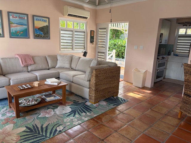 The living room area is awash in elegance and tropical