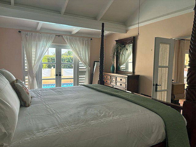 AC, 55" Smart TV in bedroom, french doors out to the pool deck and bath ensuite.