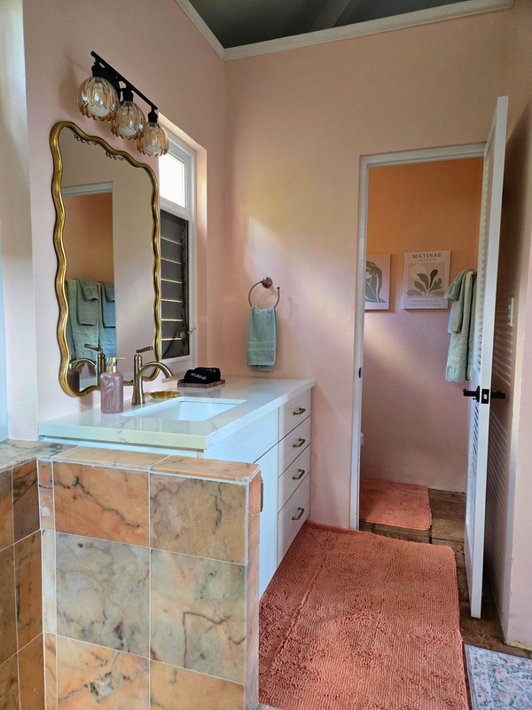 There's also an adjacent bathroom with large walk in marble shower,vanity