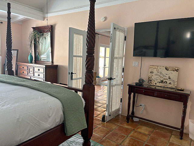 AC, 55" Smart TV in bedroom, french doors out to the pool deck and bath ensuite.